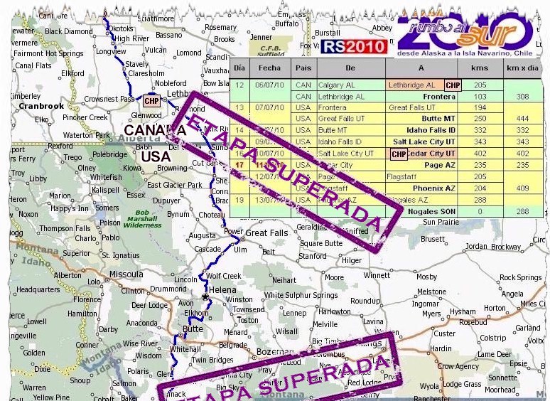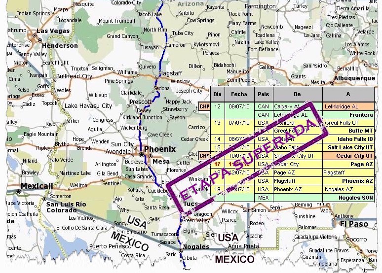 Hoja de ruta -  USA continental:  Etapa superada: 05 al 13 de Julio - 2,453 kms