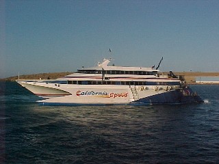 CALIFORNIA SPEED Somos una Empresa Naviera de pasaje rápido cubriendo las siguientes rutas: GUAYMAS - SANTA ROSALIA: Sale del Puerto de Guaymas a las 09:00 horas los dias miércoles. SANTA ROSALIA - GUAYMAS : Sale de Santa Rosalía a las 16:00 horas. TARIFAS LA PAZ - TOPOLOBAMPO: Sale del Puerto de Pichilingue a las 08:30 hrs los dias martes, sábados y domingos. TOPOLOBAMPO - LA PAZ: Sale del Puerto de Topolobampo a las 15:00 hrs los dias jueves, sábados y domingos TARIFAS Plus: $550.00 Los pasajeros deberán presentarse con una hora de anticipación antes de la salida de la embarcación. Informaciones y reservaciones con Mariela Hernández a los teléfonos: (01 800) 122-1414 / (01 612) 128-4596 / (01 612) 128-4597